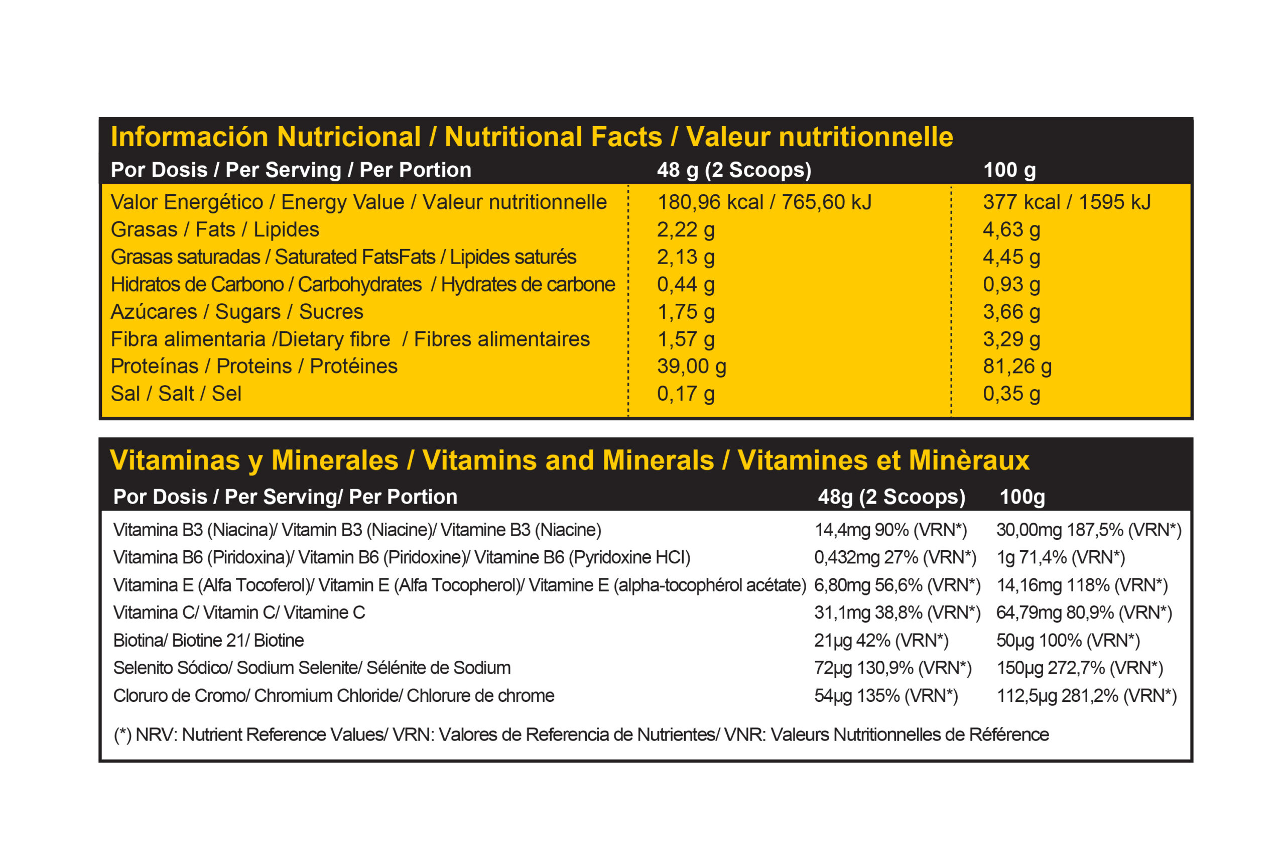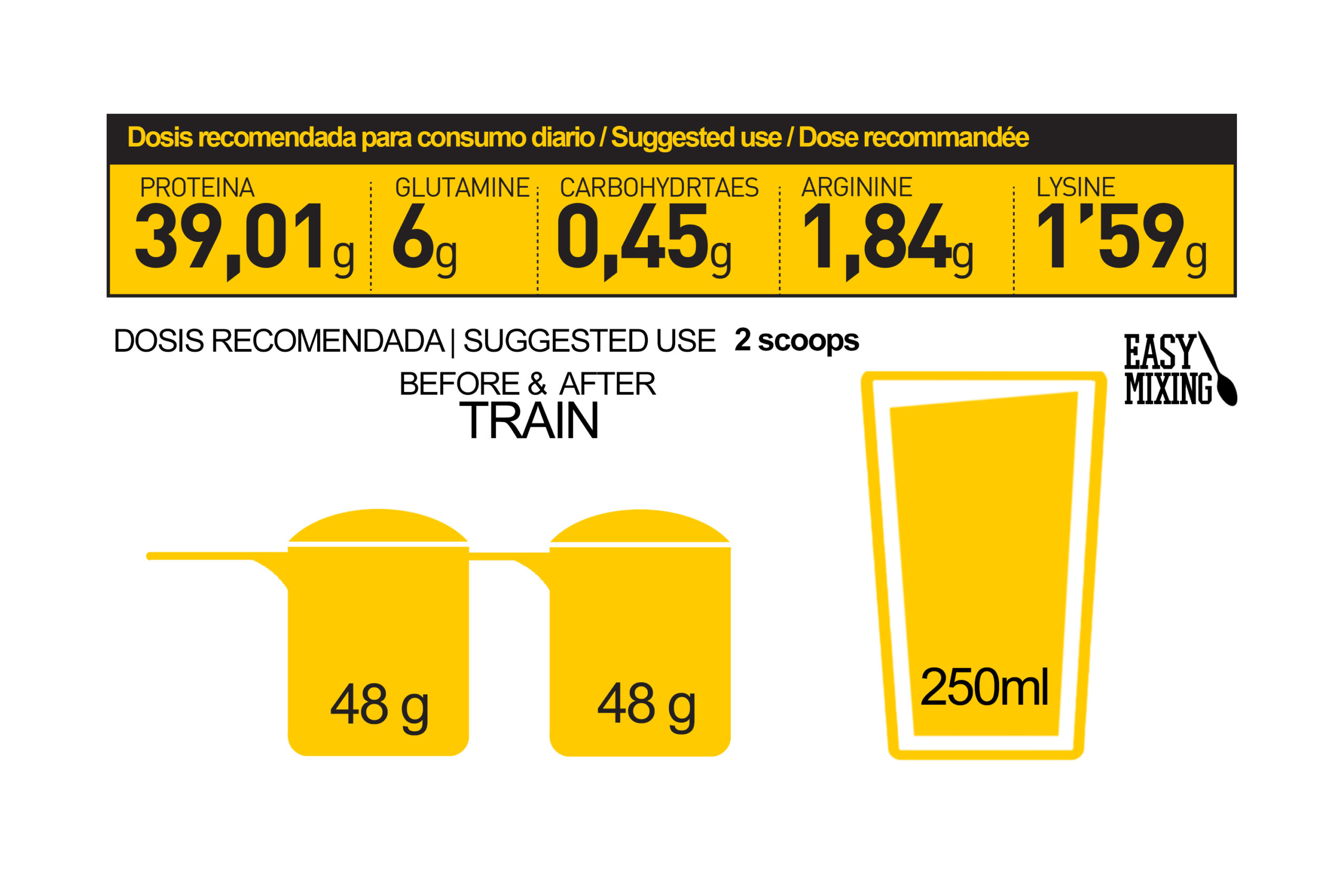 Iso&Whey ne contient que 0,20 grammes de glucides par service et 39,06 grammes de protéines, plus de 6 grammes de glutamine, 1.84g d’arginine et 1,59g lysine.