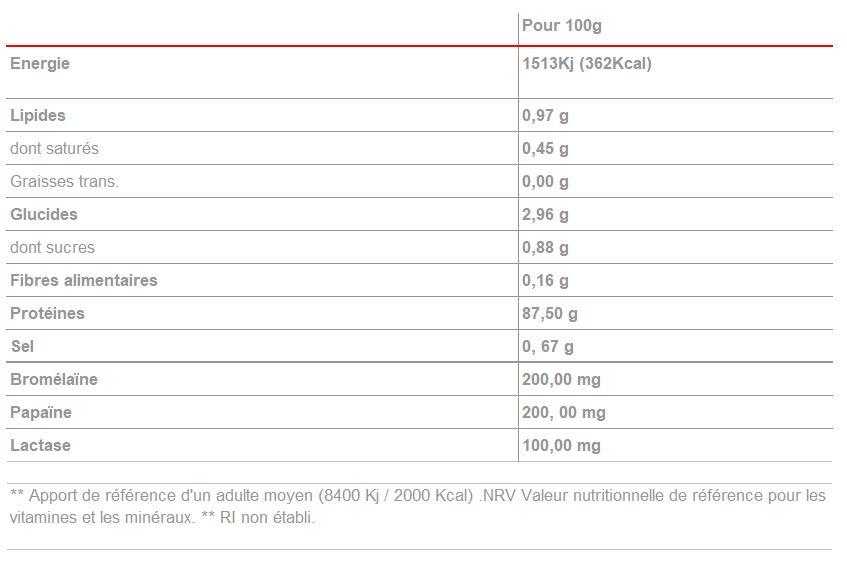 Ce produit est un complément alimentaire hyperprotéiné. Ne peut être utilisé comme substitut d’un régime alimentaire varié.